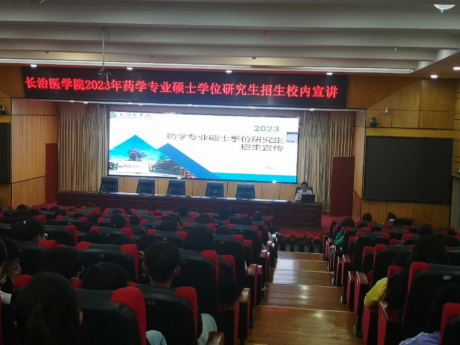 2022年9月18日上午,药学系在临床技能中心以线上线下相结合的方式举办了长治医学院2023年药学专业硕士学位研究生招生校内宣讲活动。活动邀请了我校研究生处处长韩玲娜,药学系副主任贺艳斌进行宣讲。药学、中药学专业2019级、2020级近300名学生参与了此次活动,宣讲会由药学系辅导员李婷老师主持。